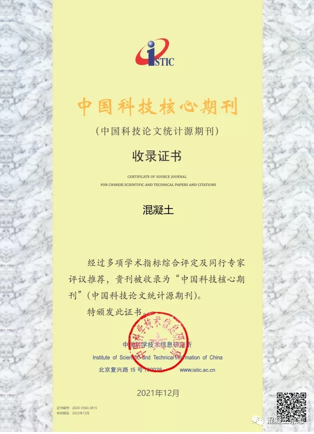 喜報(bào)|《混凝土》雜志再次被收錄“中國科技核心期刊”!