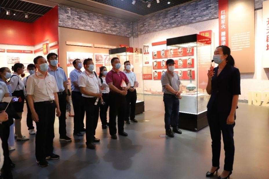 會后,全體同志參觀了“紅色記憶--天津革命文物展”,并在鮮艷的黨旗前,重溫入誓詞。