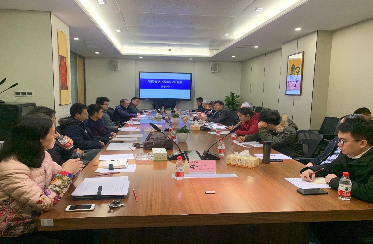 2020年12月29日上午,由中國(guó)建筑業(yè)協(xié)會(huì)鋼木建筑分會(huì)(以下簡(jiǎn)稱:中建協(xié)鋼木分會(huì))和湖南省鋼結(jié)構(gòu)行業(yè)協(xié)會(huì)(以下簡(jiǎn)稱:湖南省協(xié)會(huì))共同主辦、湖南金海集團(tuán)有限公司承辦的湖南省鋼結(jié)構(gòu)行業(yè)發(fā)展研討會(huì)在長(zhǎng)沙召開。湖南省協(xié)會(huì)召集省內(nèi)近20家大型建筑企業(yè)、設(shè)計(jì)院所和鋼結(jié)構(gòu)生產(chǎn)、施工企業(yè)在金海集團(tuán)會(huì)議室就推動(dòng)湖南省鋼結(jié)構(gòu)行業(yè)的發(fā)展進(jìn)行了研討。中建協(xié)鋼木分會(huì)高級(jí)顧問劉哲、副秘書長(zhǎng)劉民,湖南省協(xié)會(huì)秘書長(zhǎng)黃潔出席會(huì)議,會(huì)議由劉民主持。