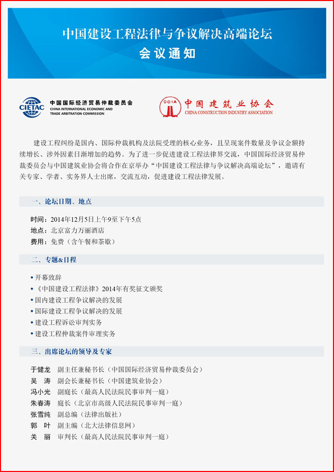 中國建設工程法律與爭議解決高端論壇會議通知