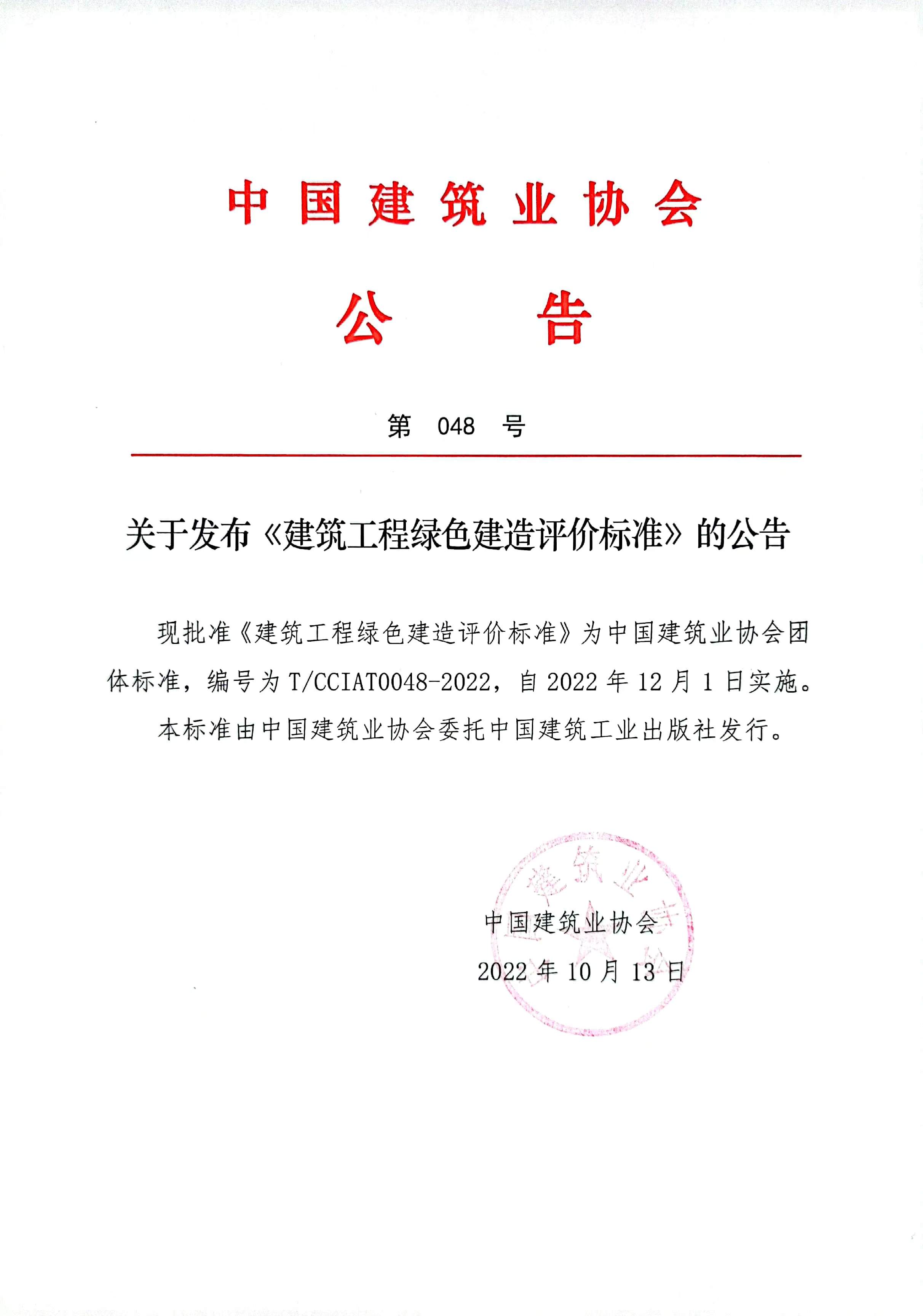 關于發布《建筑工程綠色建造評價標準》的公告