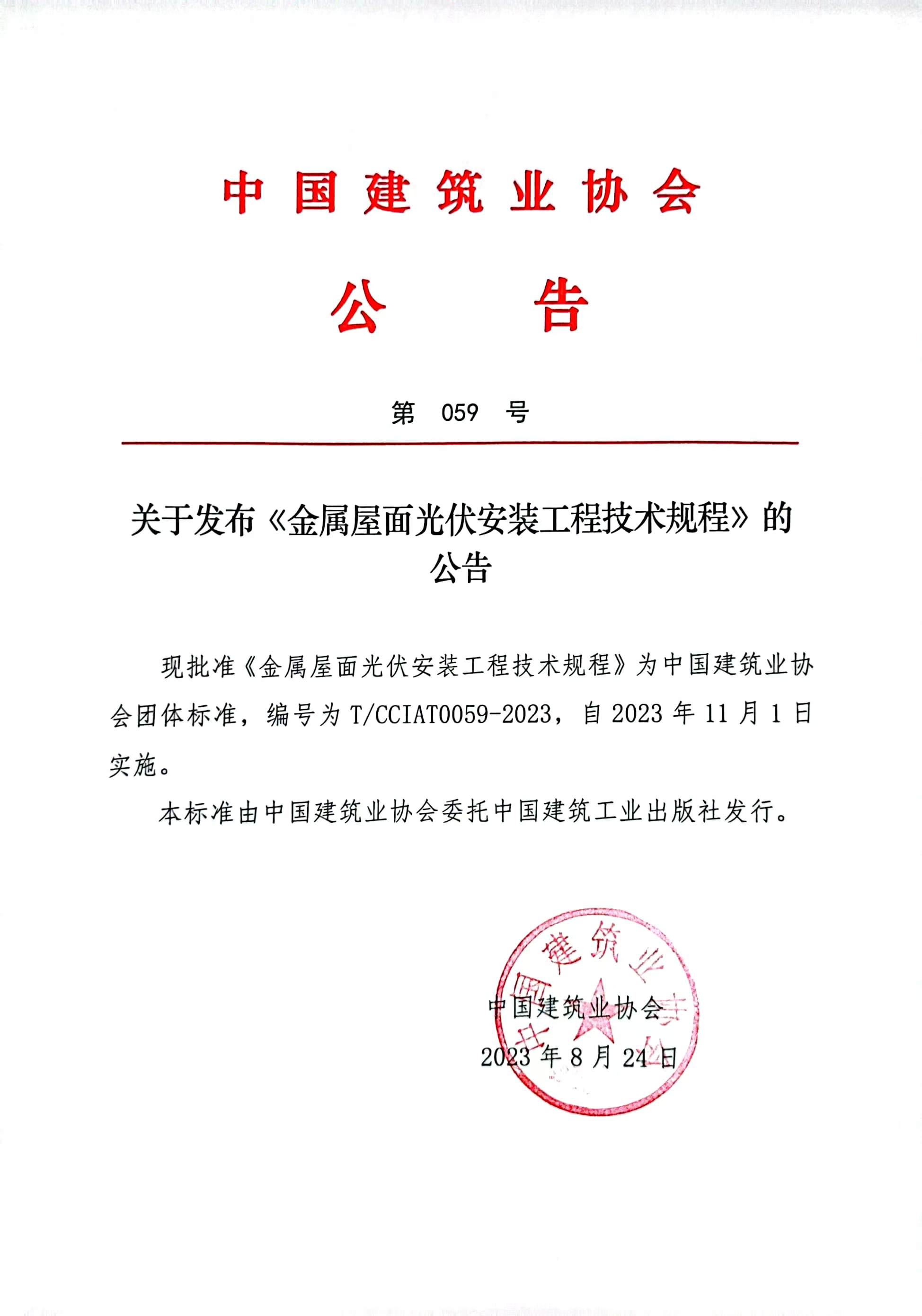 關(guān)于發(fā)布《金屬屋面光伏安裝工程技術(shù)規(guī)程》的公告