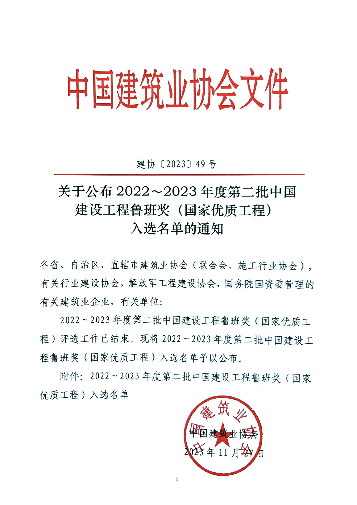 關于公布2022~2023年度第二批中國建設工程魯班獎(國家優質工程)入選名單的通知