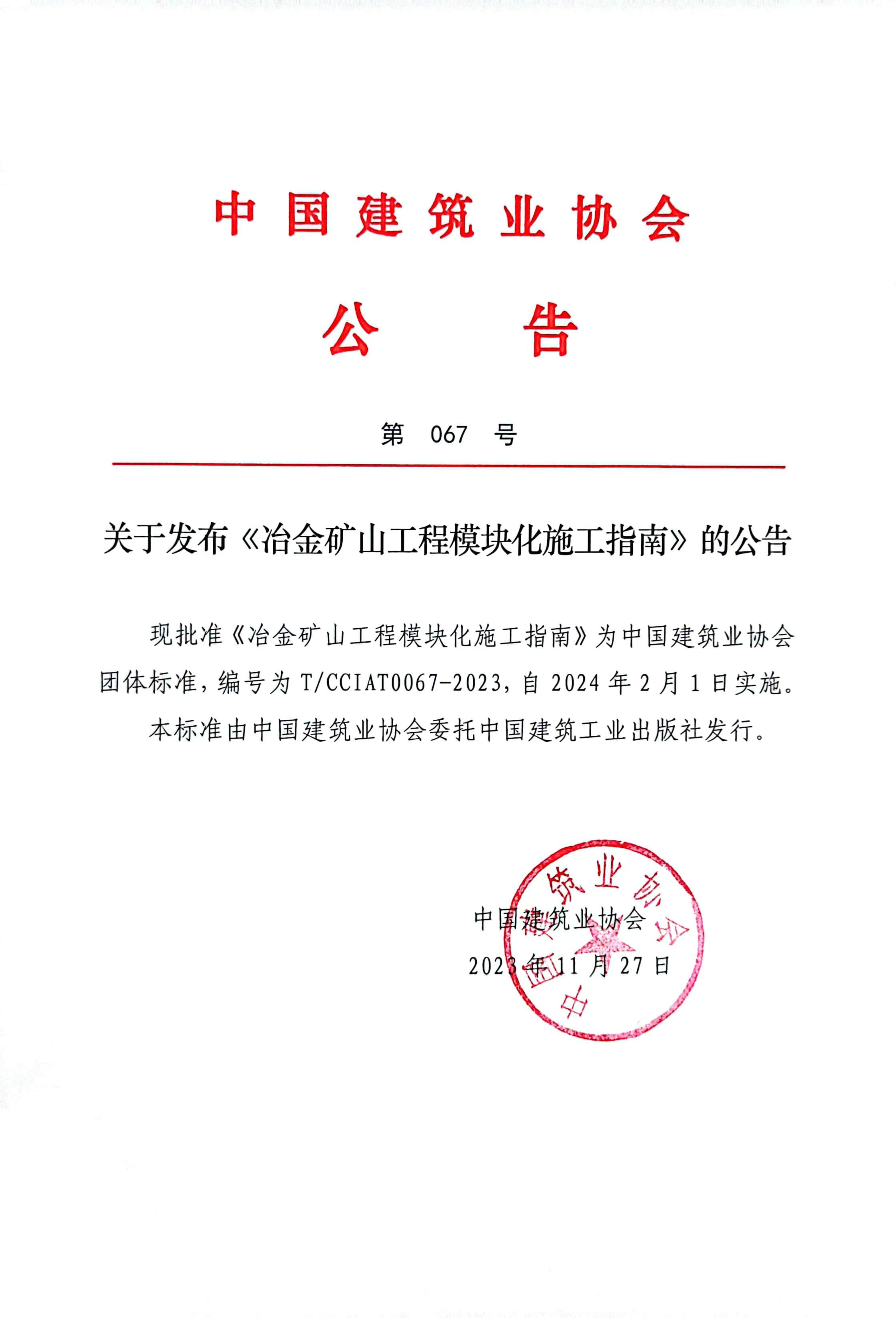 關于發布《冶金礦山工程模塊化施工指南》的公告
