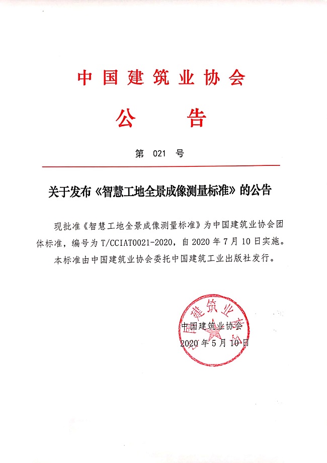 關(guān)于發(fā)布《智慧工地全景成像測量標(biāo)準(zhǔn)》的公告