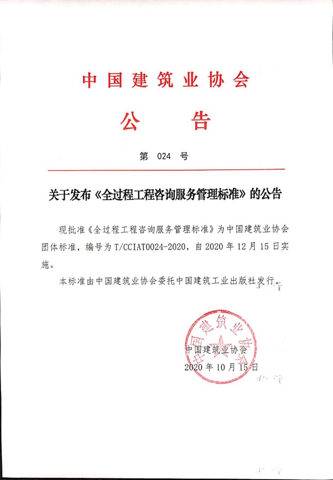 關于發布《全過程工程咨詢服務管理標準》的公告