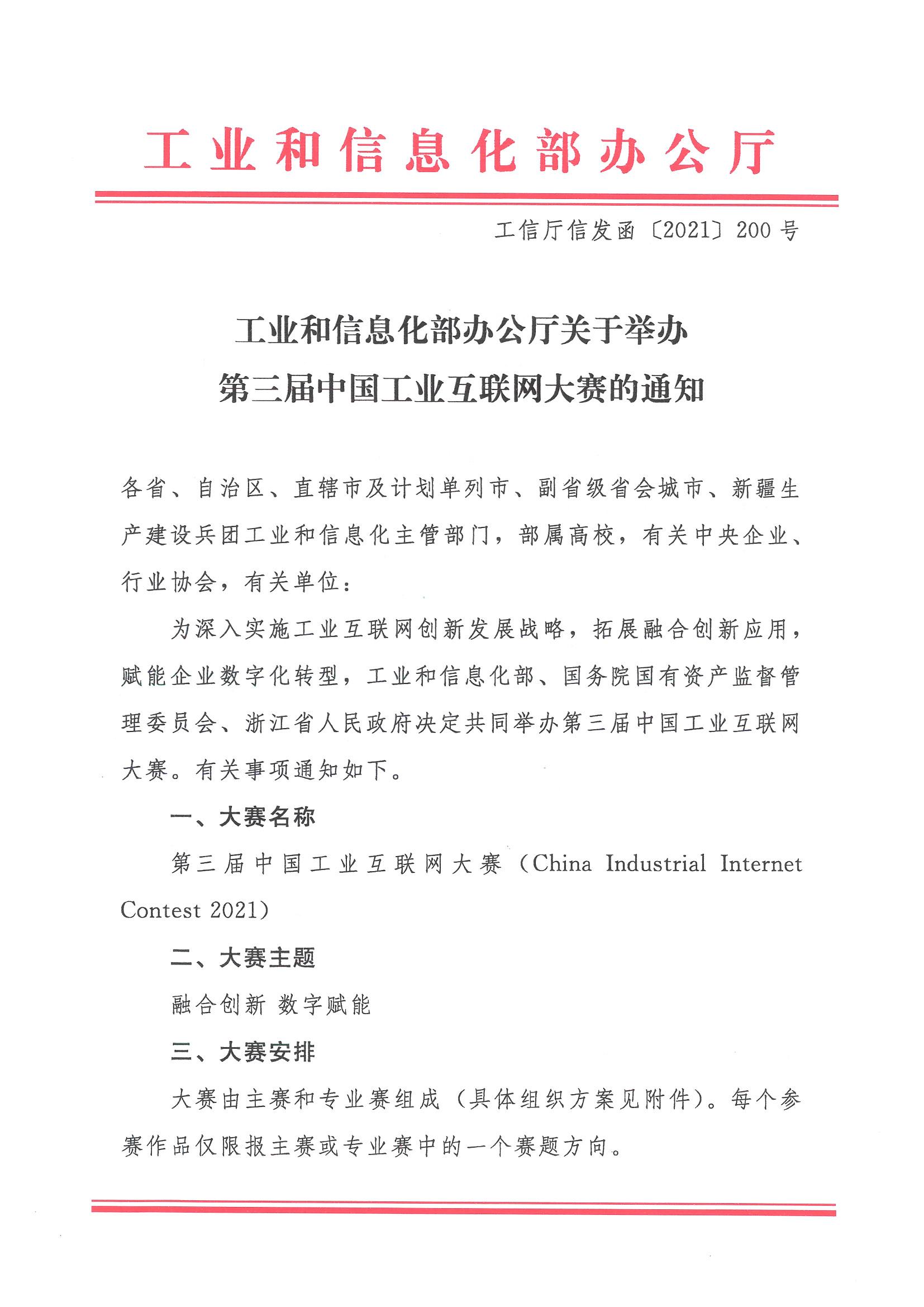 轉發《工業和信息化部辦公廳關于舉辦第三屆中國工業互聯網大賽的通知》