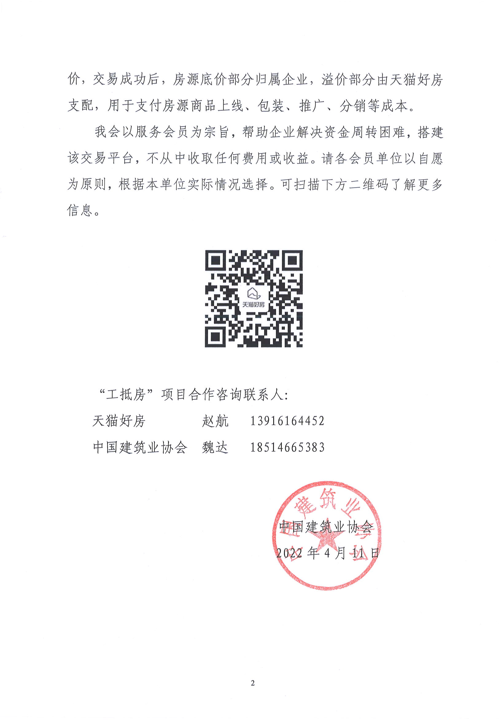 關于與天貓好房開展“工抵房”合作的通知