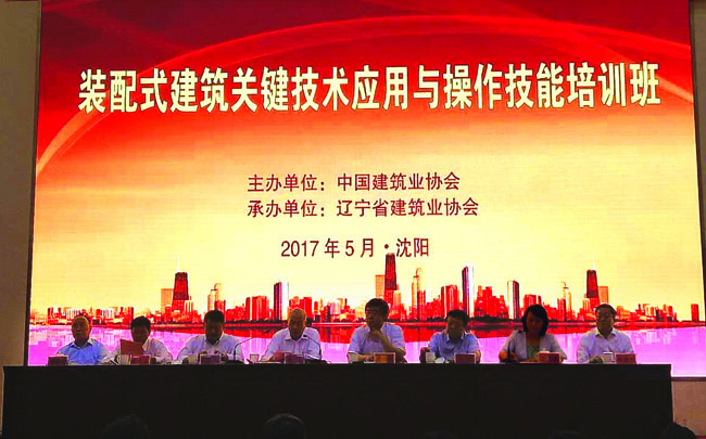 為貫徹落實(shí)《關(guān)于大力發(fā)展裝配式建筑的指導(dǎo)意見》(國辦發(fā)〔2016〕71號)文件精神,大力推廣裝配式建筑,提升裝配式施工水平,培養(yǎng)具有工匠精神的裝配建造專業(yè)化技能隊(duì)伍,由中國建筑業(yè)協(xié)會(huì)主辦,遼寧省建筑業(yè)協(xié)會(huì)協(xié)辦的“裝配式建筑關(guān)鍵技術(shù)應(yīng)用與操作技能”培訓(xùn)班于5月17~19日在沈陽市隆重開班。中國建筑業(yè)協(xié)會(huì)副會(huì)長兼秘書長吳濤,遼寧省建筑業(yè)協(xié)會(huì)會(huì)長范越林、副會(huì)長兼秘書長孟寶良等領(lǐng)導(dǎo)和專家出席開班儀式。中國建筑業(yè)協(xié)會(huì)副秘書長王秀蘭主持開班儀式。