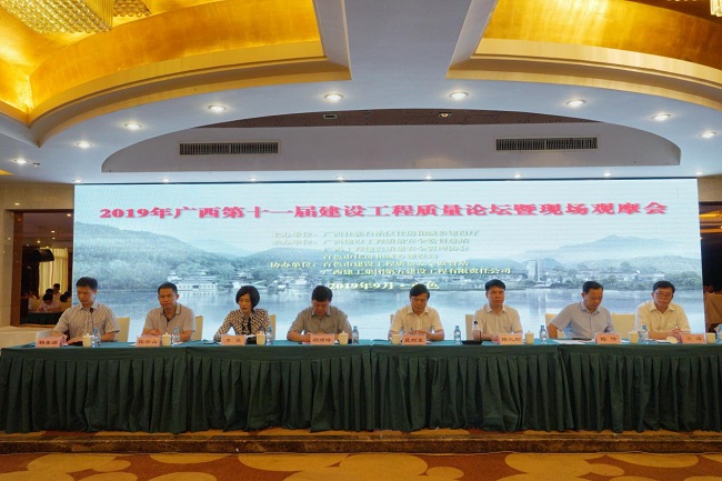 9月17日~9月20日,中國建筑業協會攜手廣西、湖北兩地住房和城鄉建設廳,分別在“百色市”和“麻城市”舉辦了2019年“質量月”“革命老區專家行”活動。9月18日在百色與廣西住房和城鄉建設廳共同舉辦了“第十一屆廣西建設工程質量論壇暨質量管理標準化樣板觀摩會”。廣西住房和城鄉建設廳副廳長楊綠峰、中國建筑業協會副秘書長李菲、百色市人民政府副市長藍樹東、廣西建工集團副總經理陳禮松、廣西工程建設質量安全管理協會會長袁海出席開幕式并致辭。李菲副秘書長在會上肯定了廣西在工程質量管理方面取得的成績,對開展“質量月”活動提出了三點意見:1、“質量月”活動是落實“質量強國”戰略的重要舉措。2、“質量月活動”應主題鮮明、形式多樣。3、質量月活動應月月開展,常抓不怠。開幕式結束后,楊綠峰副廳長和李菲副秘書長到工地進行了觀摩和指導。