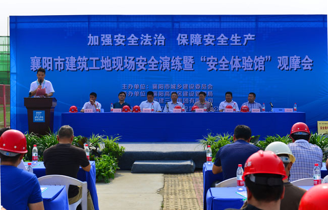 6月18日,襄陽市建筑工地現場安全演練暨“安全體驗館”觀摩會在中建三局襄陽余崗項目舉行。襄陽高新區管委會、襄陽市城建委、市安全監督管理部門相關領導及項目監理單位、在建工程項目經理、安全負責人200余人參加。