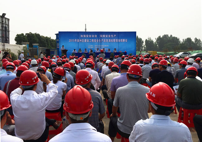 此次會議是針對在施工過程中出現安全事故采取緊急救援的演練觀摩會,也是同行在建設領域內的安全施工管理交流會。主要目的是樹立“以人為本”的安全理念,堅持“安全第一、預防為主、綜合治理”的方針,堅持“發展不能以犧牲人的生命為代價,生命是一條不可逾越的紅線”的原則,努力做到“生命至上,安全第一”,把安全責任放在第一位。