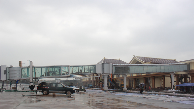 2016年元月8日,航站樓管線安裝完成90%、裝修施工完成80%,綜合辦公宿舍樓管線安裝已完成95%、裝修施工完成95%;塔臺、航管樓管線安裝完成90%,裝修施工完成90%,消防救援站、貨運站、中心變電站及綜合業(yè)務(wù)用房管線安裝完成95%,裝修施工完成98%。