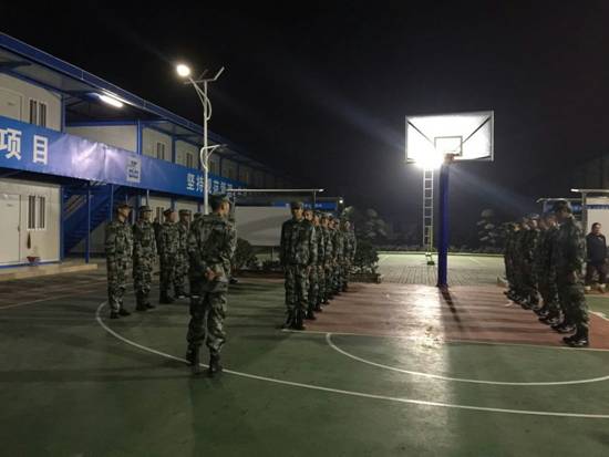 在嘹亮的軍號聲中,大家迅速起床,快速洗漱,整理寢室內務,穿上統一餓迷彩服,前往籃球場集合。這不是部隊也不是學校集合軍訓,而是中建三局二公司基礎設施公司107國道擴改項目部開展為期15天軍事化訓練的第一天。