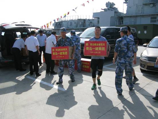 今年是中國人民解放軍建軍90周年。在“八一”建軍節來臨之際,為加強軍民團結,扎實做好擁軍優屬工作,進一步鞏固和發展軍民關系,營造“軍愛民、民擁軍”的良好社會氛圍,青島一建集團有限公司黨委副書記、副總裁韓聰興一行十余人前往軍民共建單位“青島艦”進行慰問并送去節日禮品。