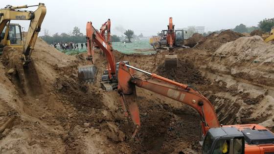 11:05分,王鑫帶領工地10余名工作人員和5臺挖掘機、2臺型裝載機,趕到事發(fā)現(xiàn)場,大家聽從消防人員的統(tǒng)一安排,立刻發(fā)動機器沿著被困男童豎井的東側(cè)進行分段流水挖土。此時,項目執(zhí)行經(jīng)理呂斌、生產(chǎn)副經(jīng)理王鑫立刻扮演成指揮員,他倆繃緊心弦,一邊指揮者現(xiàn)場的工程機械作業(yè),一邊注視著救援人員的安全。