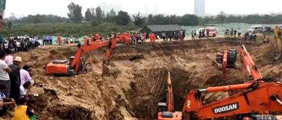 16:20分,開挖深度達到12米,積水出現(xiàn),現(xiàn)場開啟抽水設備,與挖掘機械穿插作業(yè)。在挖掘即將到達墜落男孩所在深度時,靠近深井周圍的砂層突然發(fā)生垮塌,由于作業(yè)面空間受限,救援難度急劇增加。此時距事發(fā)已近7個小時,雖然從井口一直在向男孩輸送氧氣、食物、水作為能量補給,但是被困時間過長,現(xiàn)場每個人員心急如焚。
