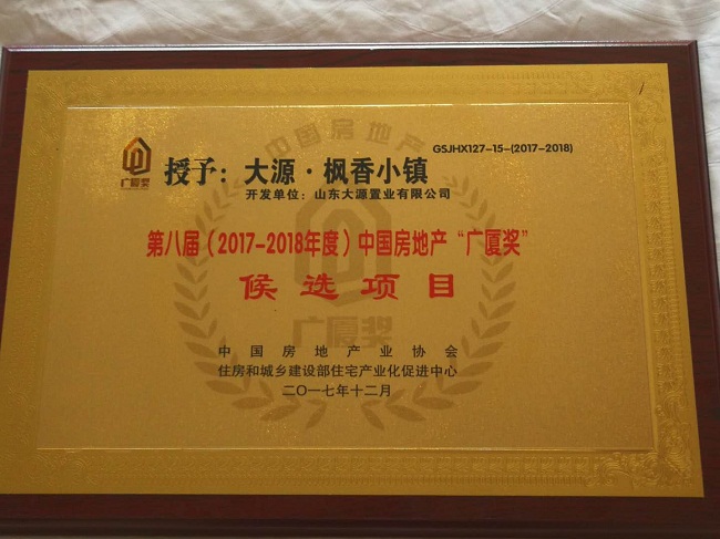近日,從全國一級資質房地產開發企業座談會上獲悉,由中國房地產業協會和住房和城鄉建設部住宅產業化促進中心組織的第八屆(2017—2018年度)中國房地產"廣廈獎"候選項目中,山東大源集團開發的大源楓香小鎮項目榜上有名,被評為國家房地產開發“廣廈獎”候選項目。