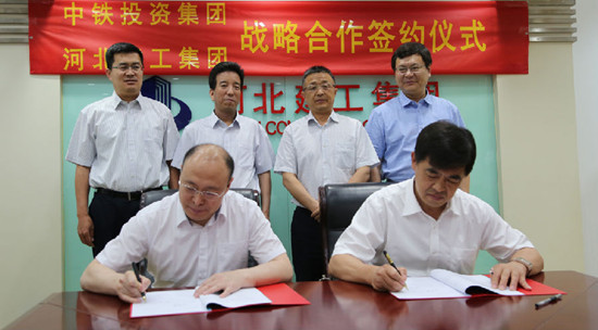 5月25日下午,河北建工集團與中鐵投資集團有限公司戰略合作協議簽字儀式在集團公司二樓會議室舉行,中鐵投資集團副總經理修貴、總會計師張亞旭,河北建工集團總經理張天平、總會計師王書臣、副總經理劉金橋出席儀式。