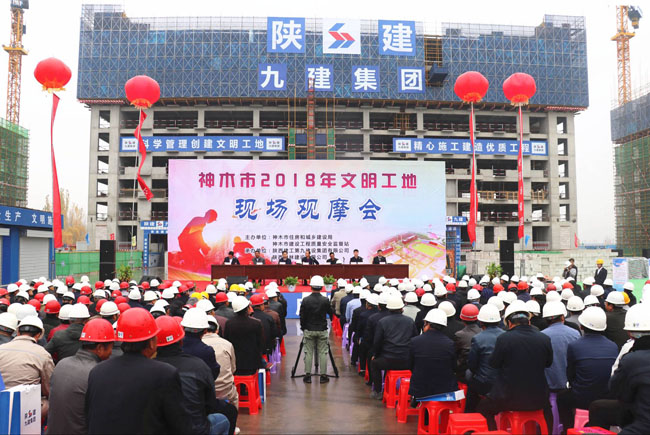 為進一步加強建筑施工質量安全管理,深化文明工地創建活動,全面推進施工現場揚塵治理和安全生產標準化建設工作,10月18日下午,神木市2018年文明工地現場觀摩會在神木市第一高級中學工程二標段項目順利召開,神木市住建局、質監站、建筑業協會、神木市各企業等單位共有500余人參加本次觀摩會。