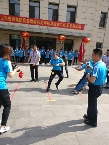 “加油、加油”伴隨著一陣陣加油吶喊聲,山東省工業(yè)設(shè)備安裝集團有限公司舉辦的“喜迎建國70周年,我與企業(yè)共成長”系列活動暨拔河項目于9月25日上午在總部機關(guān)小廣場隆重拉開了序幕,來自總部機關(guān)近一百名職工采用現(xiàn)場抓鬮隨機組成8個方隊,比賽采用“三局兩勝”制,經(jīng)過緊張激烈的19場回合的較量,其中2、4、6隊分別獲取了一、二、三等獎,并由全體職工組成了“70”方陣圖案和合唱《我和我的祖國》,以實際行動為共和國70華誕獻上了一份真誠祝福。
