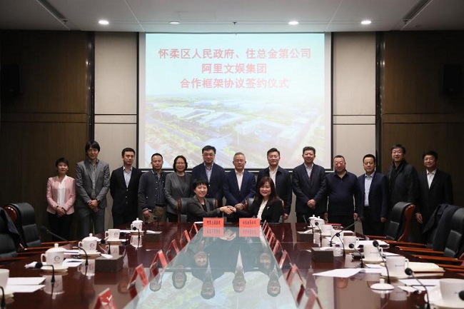 當天上午,住總集團北京金第房地產開發有限責任公司(以下簡稱“住總金第公司”)與阿里文娛集團在懷柔簽署合作框架協議。懷柔區政府與阿里巴巴文娛集團同時簽約。懷柔區區委書記戴彬彬,阿里巴巴集團副總裁常揚,住總集團黨委書記、董事長顧昱等三方領導出席儀式并致辭。