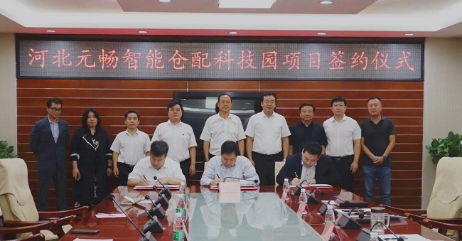 9月23日,河北元暢智能倉配科技園項目簽約儀式于在黃驊市政府會議廳隆重舉行,黃驊市市委書記朱春燕,黃驊市市長宋忠秋,黃驊市市委常委、常務副市長孟輝,大元集團投融資集群總裁趙建峰,北京暢速公司總經理王金福出席儀式。