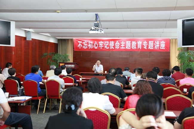 劉海濤教授闡述了中國共產(chǎn)黨初心和使命的由來,指出中國共產(chǎn)黨要走出“其興也勃也,其亡也忽也”的歷史周期律,帶領(lǐng)全國人民實(shí)現(xiàn)中國夢,就要時(shí)刻“不忘初心、牢記使命”,這也是我們黨開展這次主題教育的重要意義所在。劉教授的報(bào)告內(nèi)容豐富,生動幽默,深入淺出,參會的黨員干部受到了很大的啟發(fā)和教育。