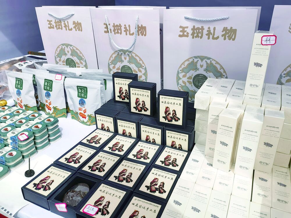 在2024年新春非遺展演暨“非遺大集”系列活動中,白卡的展示臺上除了傳統的酥油、風干牦牛肉外,引起大家最多關注的還有一盒盒包裝精美的曲克安噠化妝品和蕁麻茶。