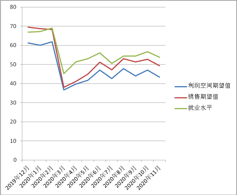 美國建造師和承包商聯(lián)合會每月就建筑銷售預(yù)期、利潤空間預(yù)期和人員到位預(yù)期發(fā)布信心指數(shù)報告。分值50以上表明增長。