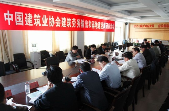 4月26日,中國建筑業協會建筑勞務輸出和基地建設調研座談會在臨沂市召開。中國建筑業協會建筑企業經營和勞務管理分會秘書長邢作國、山東省業建筑業協會副秘書長韓同振、臨沂市住建委副主任閔銳出席座談會。