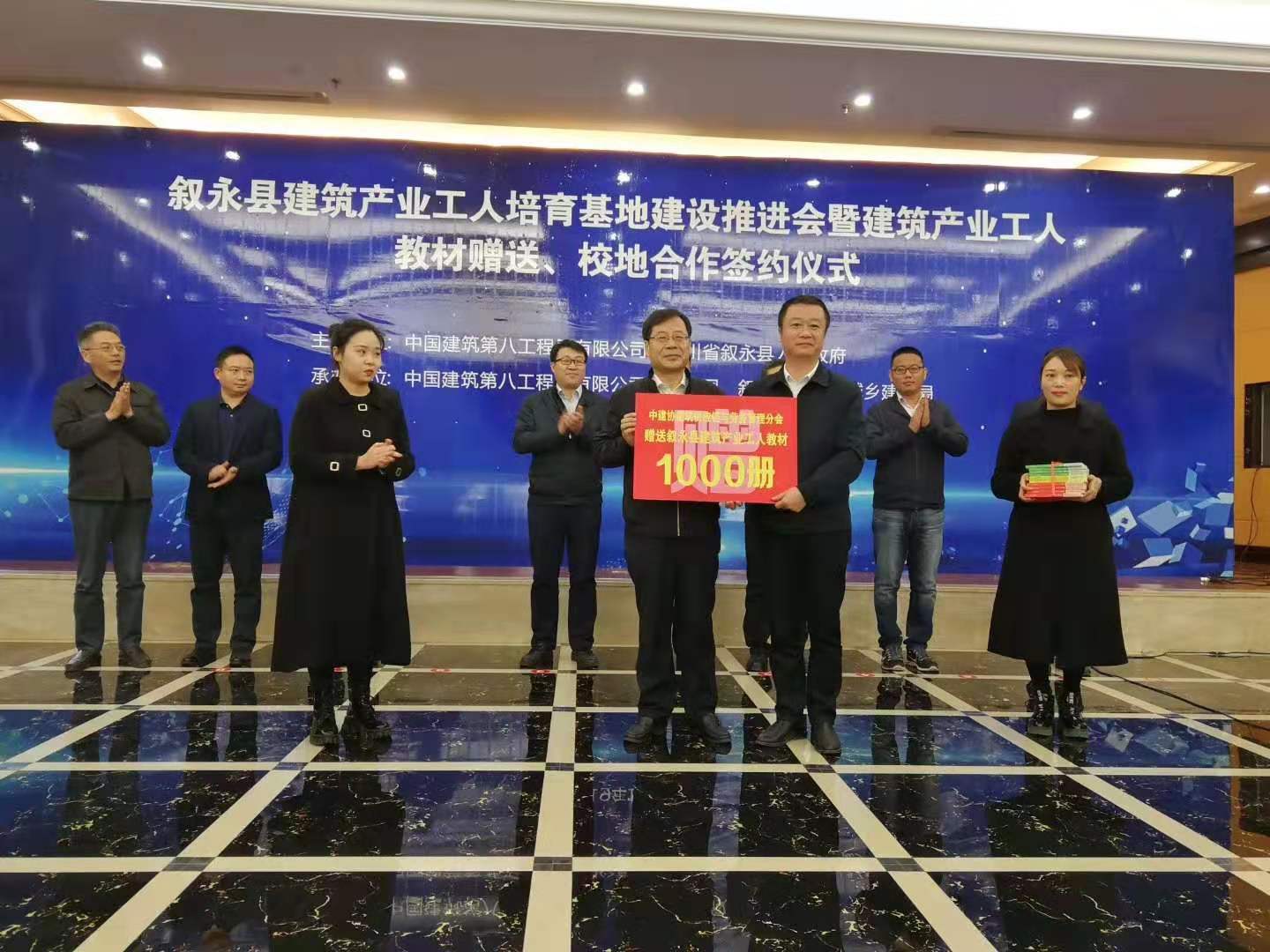 會(huì)上,中國(guó)建筑業(yè)協(xié)會(huì)建筑供應(yīng)鏈與勞務(wù)管理分會(huì)副會(huì)長(zhǎng)兼秘書(shū)長(zhǎng)邢作國(guó)代表協(xié)會(huì)向敘永縣贈(zèng)送砌筑工、鋼筋工、測(cè)量工3套建筑工人培訓(xùn)教材共1000冊(cè),用于敘永縣建筑工人培訓(xùn),助力敘永縣建筑工人培育基地建設(shè)的順利推進(jìn)。邢作國(guó)表示,培育建筑產(chǎn)業(yè)工人隊(duì)伍是一項(xiàng)長(zhǎng)期而又艱巨的任務(wù),需要行業(yè)上下社會(huì)各界的共同努力,中國(guó)建筑業(yè)協(xié)會(huì)愿意同大家一道為培育新時(shí)期建筑產(chǎn)業(yè)工人隊(duì)伍、為行業(yè)的改革發(fā)展盡協(xié)會(huì)的一份綿薄之力。