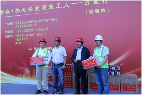 4月22日,由中國建筑業協會建筑供應鏈與勞務管理分會和人民健康網共同發起的“關心關愛建筑工人萬里行”走進中建一局集團深圳深灣匯云中心項目,為建筑工人兄弟送來“健康科普、技能提升、法律援助、紅色驛站、安全培訓、文化娛樂”等六項關愛服務。活動現場,住房和城鄉建設部建筑市場監管司、中國建筑業協會、中國建設工程造價協會、各省市建筑業協會、深圳市住房和建設局以及中國建筑一局(集團)有限公司等有關負責人,對活動的內容和措施進行調研與指導,并把醫藥物資、關愛慰問品送到項目部和建筑工人手中。