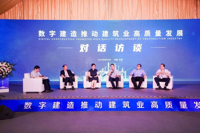 2021年6月24日,中國(guó)建筑科學(xué)大會(huì)暨綠色智慧建筑博覽會(huì)在國(guó)家會(huì)展中心(天津)勝利啟幕,作為本次大會(huì)專題論壇活動(dòng)之一的“數(shù)字建造專題論壇”于當(dāng)日下午在國(guó)家會(huì)展中心(天津)如期舉行。此次論壇是由中國(guó)建筑業(yè)協(xié)會(huì)專家委員會(huì)和天津市建筑業(yè)協(xié)會(huì)聯(lián)合承辦。論壇以“數(shù)字建造推動(dòng)建筑業(yè)高質(zhì)量發(fā)展”為主題,以主題報(bào)告、經(jīng)驗(yàn)分享、對(duì)話訪談和戰(zhàn)略合作簽約等環(huán)節(jié)呈現(xiàn)。中國(guó)建筑業(yè)協(xié)會(huì)副秘書(shū)長(zhǎng)趙峰、天津市建筑業(yè)協(xié)會(huì)科技委主任委員胡德均到會(huì)致辭。中建協(xié)專家委員會(huì)常務(wù)副主任毛志兵、副主任韓振勇設(shè)計(jì)大師等多位副主任以及天津市建筑業(yè)協(xié)會(huì)副會(huì)長(zhǎng)兼秘書(shū)長(zhǎng)張薇到會(huì)指導(dǎo)。來(lái)自天津市以及全國(guó)各地的會(huì)員企業(yè)、協(xié)會(huì)代表約350人參加了此次論壇。論壇由中建協(xié)專家委員會(huì)秘書(shū)長(zhǎng)李菲、中建協(xié)專家委員會(huì)副主任胡德均和李云貴分階段主持。